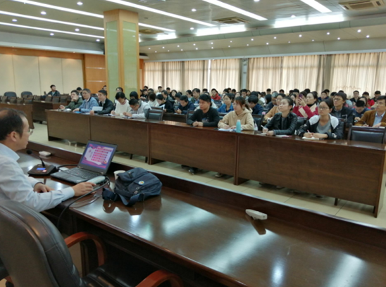 党委书记凤杰在学术会议中心二楼报告厅给学院全体党员讲授了一堂生动的“不忘初心、牢记使命”主题教育专题党课。
