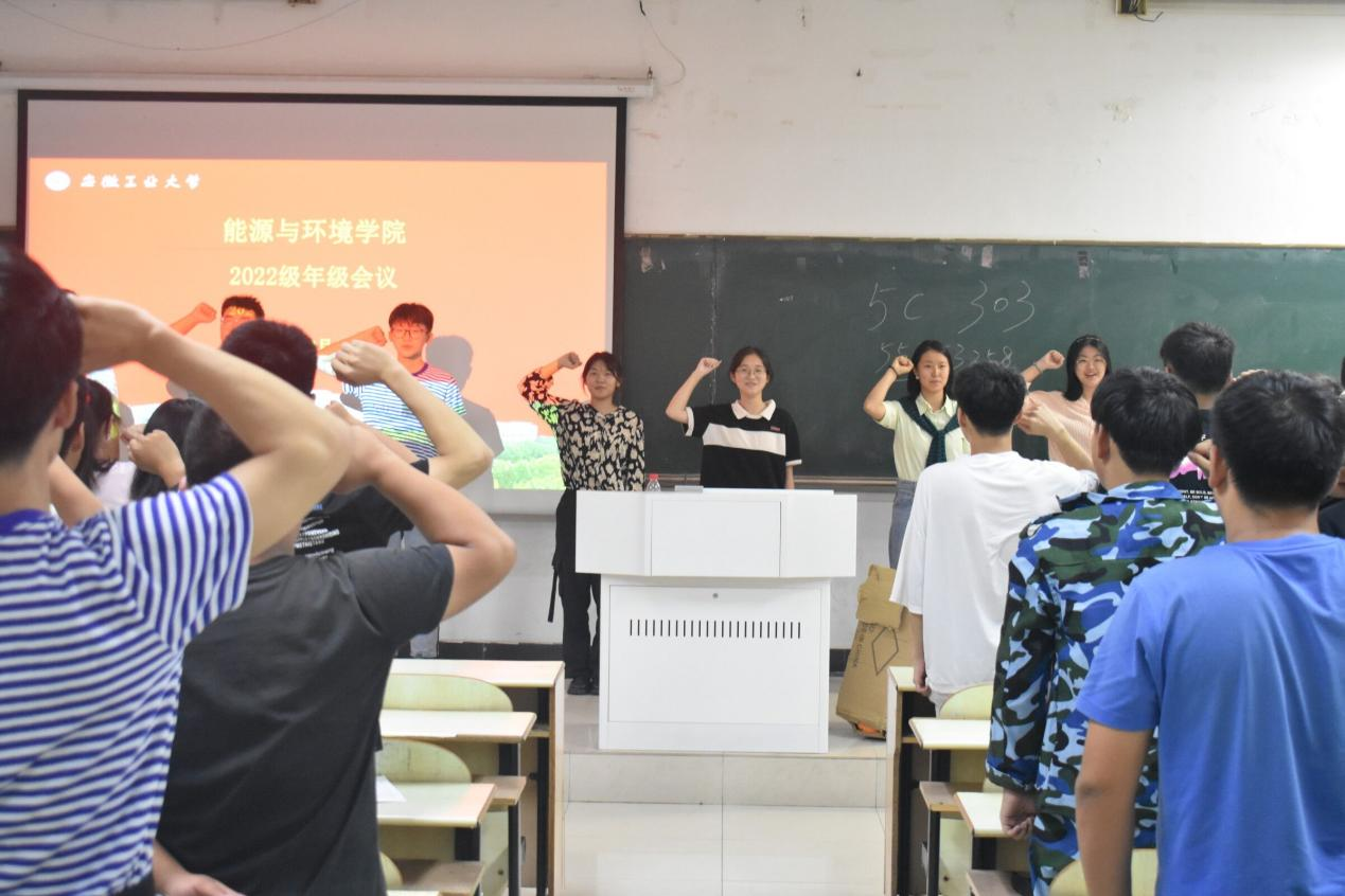在年级会开展的过程中,沈老师也随机抽取了一些性格活跃的同学上台进行自我介绍和表演节目,以此来活跃现场气氛。之后沈老师也向同学们介绍了军训期间的跑操、寝室内务整理、及寝室通风记录本书写等具体事宜,然后提醒同学们对于开学材料信息的填写进行查缺补漏,防止一些同学粗心大意将材料误填或漏填。由于新同学刚步入大学校园,许多同学心中有着许多的疑问,同学们在会上一一进行举手提问,沈老师和20级学生吕子为也耐心的为同学们答疑解惑。之后22级参加开学典礼领誓的同学带领全体新生进行排练宣誓。在会议最后,沈老师鼓励新同学在军训过程中努力训练,积极表现,为学院和班级争得荣誉。