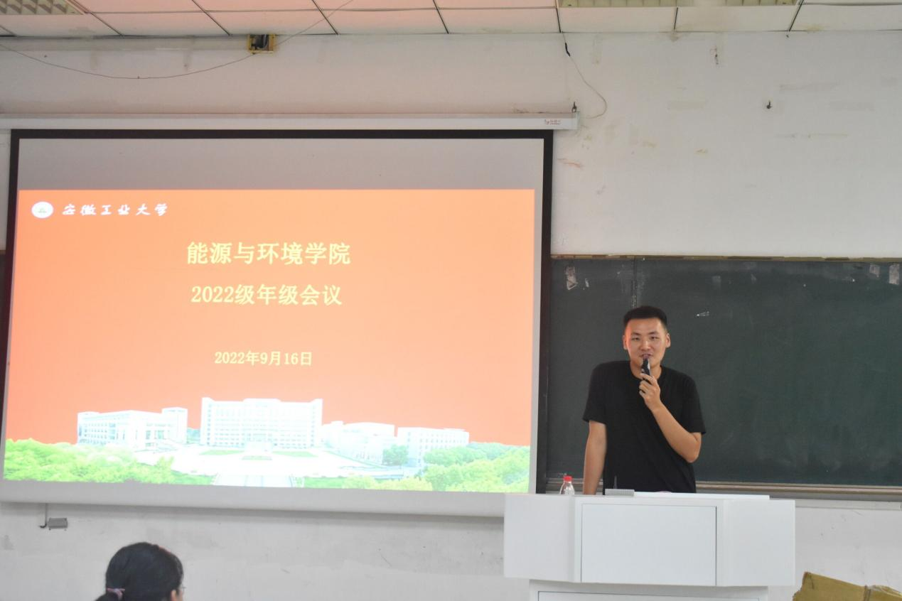 于2022年9月16日晚,在教三南103教室组织开展22级新生年级会,本次会议由22级新生辅导员沈厚发老师主持,旨在向新同学介绍开学事宜以及后续军训安排。