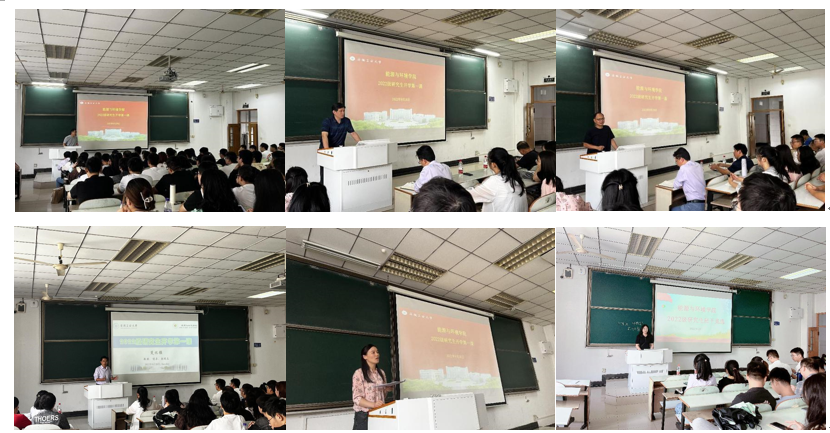 于教三南202召开了2022级研究生开学第一课。学院院党委书记凤杰、院长钱付平、院党委副书记谢文平、副院长楚化强、研究生秘书李玲老师、辅导员王稳定及全体研一新生参加了会议,会议由楚化强主持人。