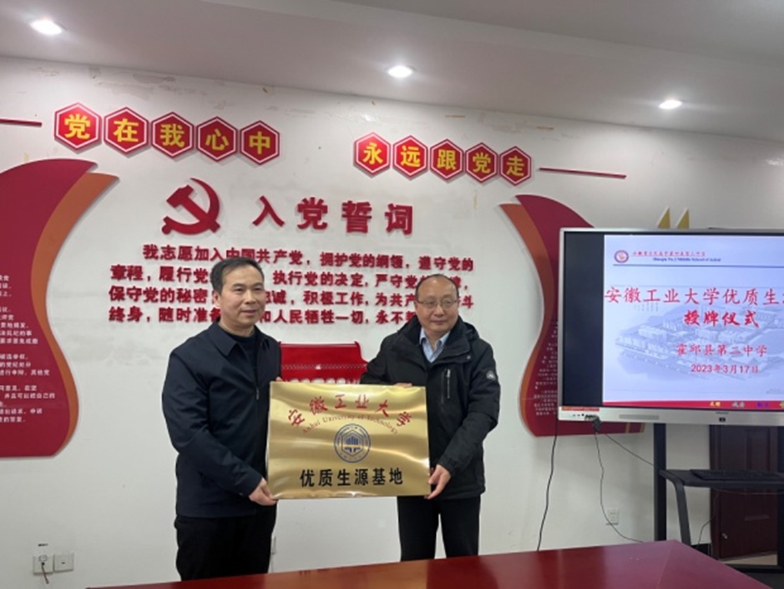 凤杰、钱付平一行还与金寨一中、霍邱一中、霍邱二中、六安一中东校区、毛坦厂中学等学校年级负责人做了深入交流,通过面对面、一对一、一对多的咨询沟通,解答了学生最关心、家长最关心、老师最关心的诸多问题,实现了以生为本的宣传动机,做到了“把学校讲好、把政策讲全、把前景讲明”。此外,凤杰、钱付平一行分别在霍邱二中、金安中学建立优质生源基地,并进行授牌仪式。