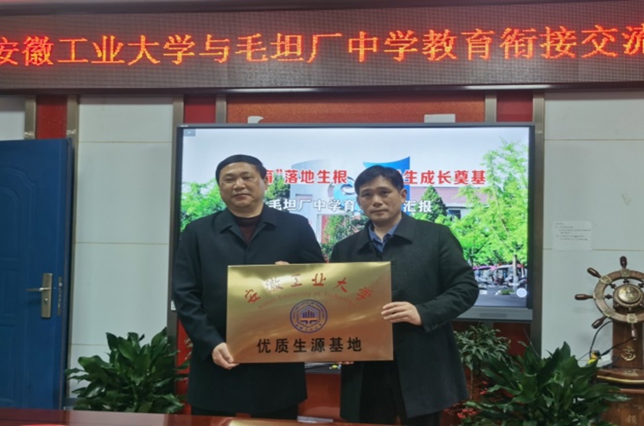 在六安二中,钱付平一行受到六安二中校长关世宏的热烈欢迎,钱付平就安徽工业大学的建校历史、学科专业建设、人才培养、人工智能—英才班、创新及就业、学生资助、硕士博士学位点建设等方面进行了介绍。钱付平还向六安二中送达优秀学子喜报和招生宣传手册,双方进行合影留念。
