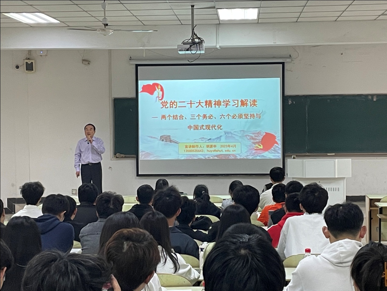 课堂上,胡老师从中国共产党的性质、党的指导思想展开,旁征博引,深入浅出,使同学们真正掌握了党的核心,党的先进性以及党的行动指南。他强调,要想学懂、学好党的二十大精神,巩固党的基本理论知识是十分有必要的。接着他着重讲解了二十大报告中的“两个结合”、“三个务必”、“六个必须坚持”以及中国现代化的内容。最后,胡老师要求同学们加强理论学习,正确理解党的先进性,全面认识党的领导核心地位。作为入党积极分子一定要端正入党动机,提高思想觉悟,将党课学到的知识运用到日常学习和生活中去。