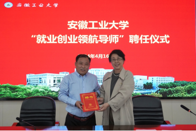 报告会前,顾明言还为高润贵校友颁发安徽工业大学“就业创业领航导师”聘书。(撰稿:王稳定;审核:卫军帅、钱付平、谢文平)