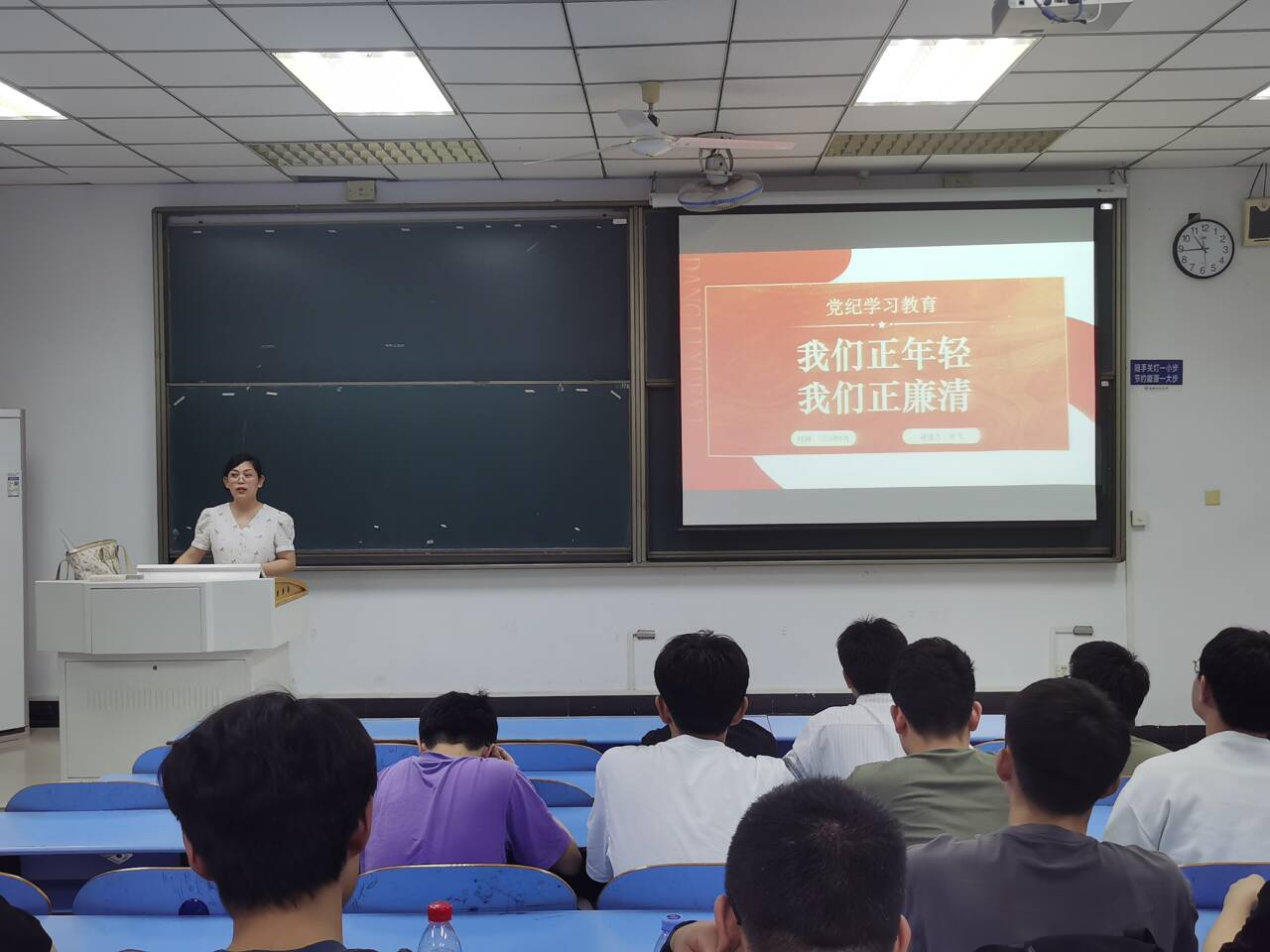 开展“我们正年轻 我们正廉清”——党的纪律之廉洁纪律教育主题宣讲会,由辅导员宣讲团成员吴飞主讲,学院全体本科生党员到场参加。