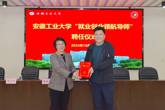 仪式上,顾明言为徐智明颁发了“安徽工业大学就业创业领航导师”聘书,代表学校向受聘的导师表示祝贺。顾明言指出,学校高度重视就业创业工作,协同推进助力学生高质量就业,多元协同促进校院两级形成就业创业工作合力,全面加强就业创业工作保障。希望受聘的就业创业领航导师,聚焦人才培养目标,把就业创业工作转化为助推学校发展的强大动能。校企合作是推动高等教育与产业发展深度融合的重要途径,希望双方能够借此机会进一步加强交流与合作,共同培养更多优秀的能源与环境领域高素质人才。期望徐智明及其企业集团在未来能够继续为学校的就业创业教育工作提供宝贵的指导和支持。受聘导师徐智明表示一定不负学校的信任和嘱托,切实发挥就业创业领航导师的教育引领和指导帮扶作用,推动校企合作成果转化,力争为我校就业创业工作多做贡献。