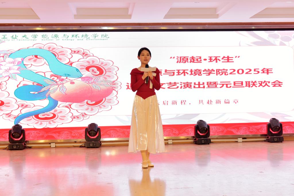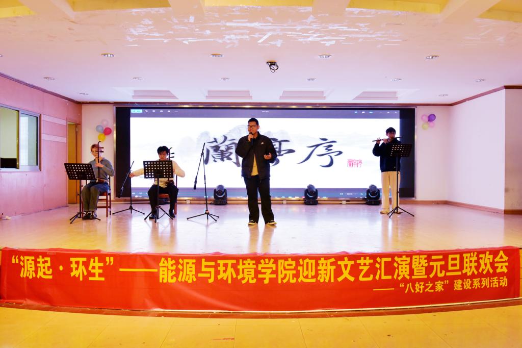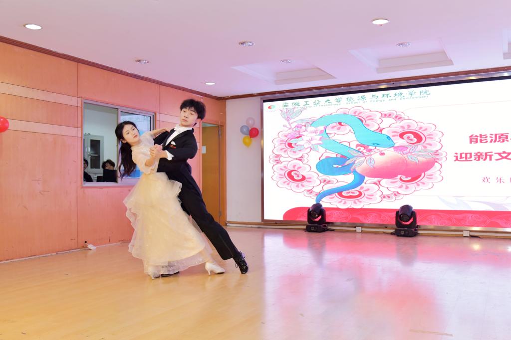 联欢会上,同学们奉献了用心精彩的演绎,节目涉及说唱、乐器演奏、舞台剧、舞蹈和合唱等多种形式。一曲《兰亭序》让同学们感受到传统乐器的无限魅力,舞台剧《满江红》展现了新时代青年对爱党爱国的深刻理解,华尔兹和探戈的舞蹈演绎点燃了全场热烈的气氛,最后《安徽工业大学校歌》和《我爱你中国》的合唱体现了安工大人爱校、爱国的精神品质。辅导员吴飞和范浩东在现场寄语2024级学生在新的一年里以更加饱满的精神状态,秉承精工博学、厚德敏行的校训,收获学识上的进步、收获品质上的成长。