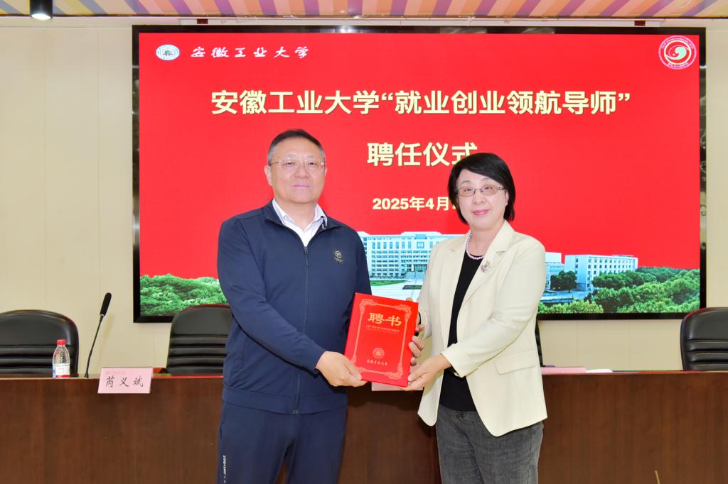 仪式上,顾明言代表学校为芮义斌颁发“安徽工业大学就业创业领航导师”聘书。她指出,学校高度重视就业创业工作,聘任就业创业领航导师是学校深化“三全育人”的重要举措。本次活动将为我校创新创业工作注入新活力,带来新思维,传授新方法,协同推进助力学生高质量就业,多元协同促进校院两级形成就业创业工作合力,全面加强就业创业工作保障。希望双方进一步加强交流与合作,共同培养更多优秀高素质复合型人才。
