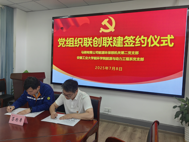 能源与动力工程系党支部与马钢有限公司能源生态环境部机关第二党支部举行联创联建签约仪式。学院党委书记谢文平,马钢有限公司能源生态环境部党委书记、副部长章连生,两个签约支部的支委及党员骨干出席签约仪式。仪式由马钢有限公司能源生态环境部机关第二党支部支部书记王思丞主持。