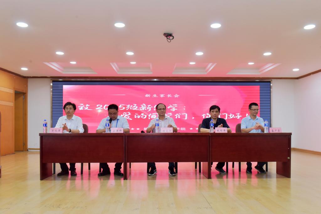院长钱付平结合新生生源特点和学院发展现状,围绕学院沿革、办学定位、师资队伍、学科专业及毕业前景等内容展开介绍,通过详实数据和典型案例,让家长对学院人才培养特色和学生未来发展方向有了清晰的认识。