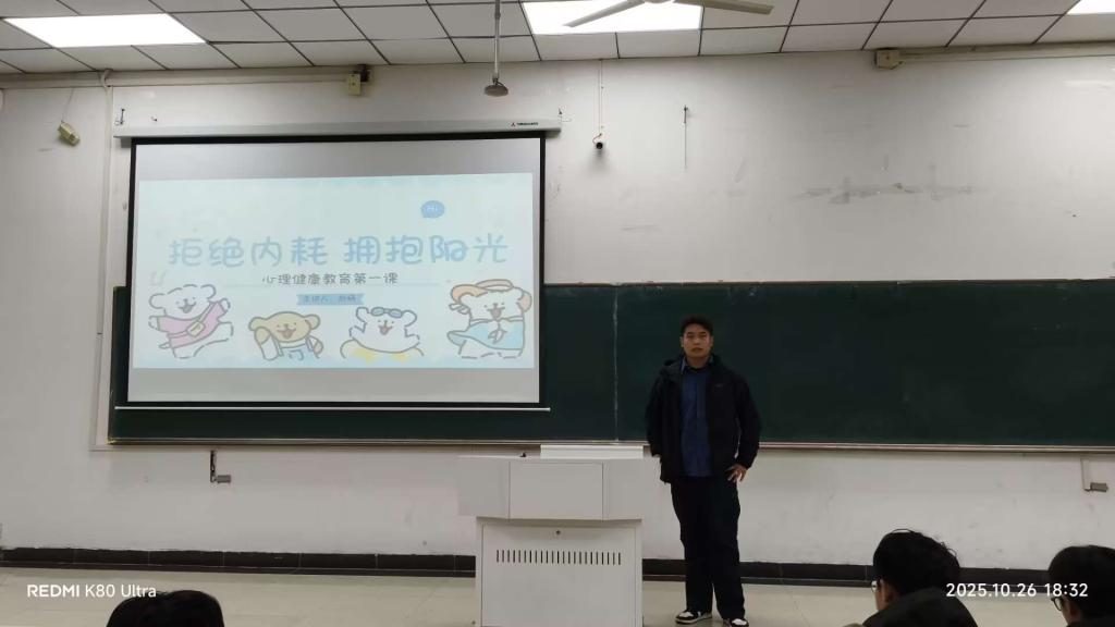 在教三南203教室举办了面向2025级新生的“心理健康教育第一课”。本次讲座由学院心理工作站站长赵杨老师主讲,全体2025级新生共同参与。