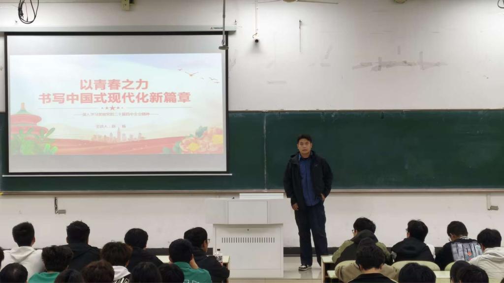 在教三南203教室面向2025级全体新生开展了党的二十届四中全会精神学习及习近平新时代中国特色社会主义思想专题宣讲。本次宣讲由2025级辅导员赵杨主讲,学院全体新生共同参加。