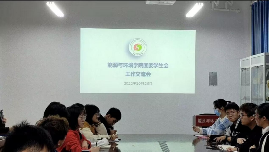 团委学生会各部门在能源楼307会议室开展工作交流会,团委书记钱春梅、足球推荐