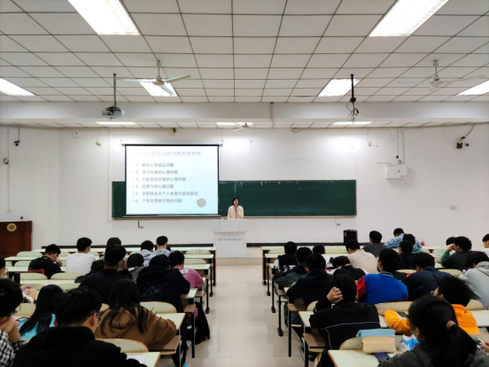 于佳山校区教三南203开展2022级新生入学适应心理讲座,讲座由院心理站站长钱春梅主讲。