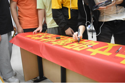 2023届毕业生离校启动仪式签字横幅上逐一签名留念。
