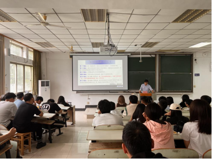 于教三南102召开了2023级研究生开学第一课。学院院长钱付平、副院长楚化强、实验室主任陈波老师、研究生秘书李玲老师、辅导员王稳定及全体研一新生参加了会议,会议由楚化强主持。